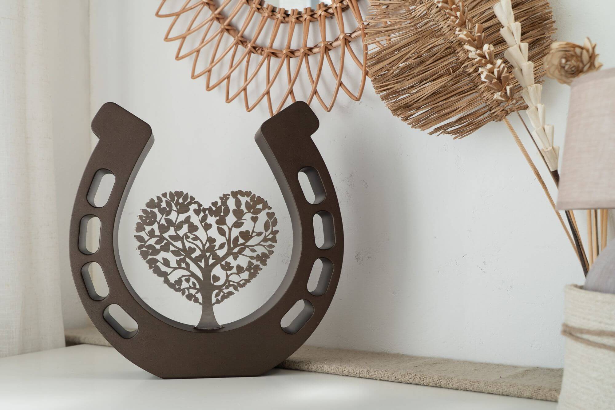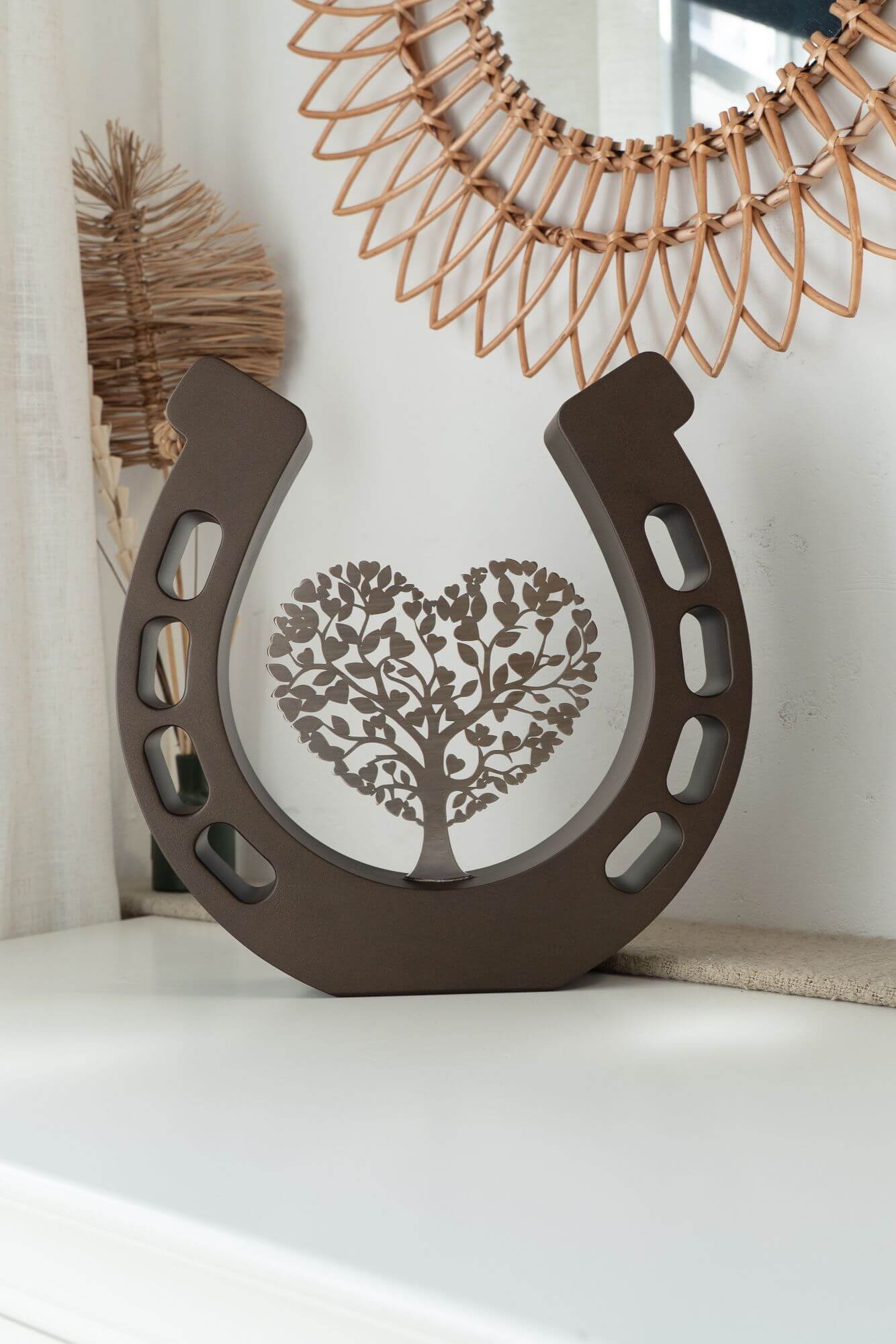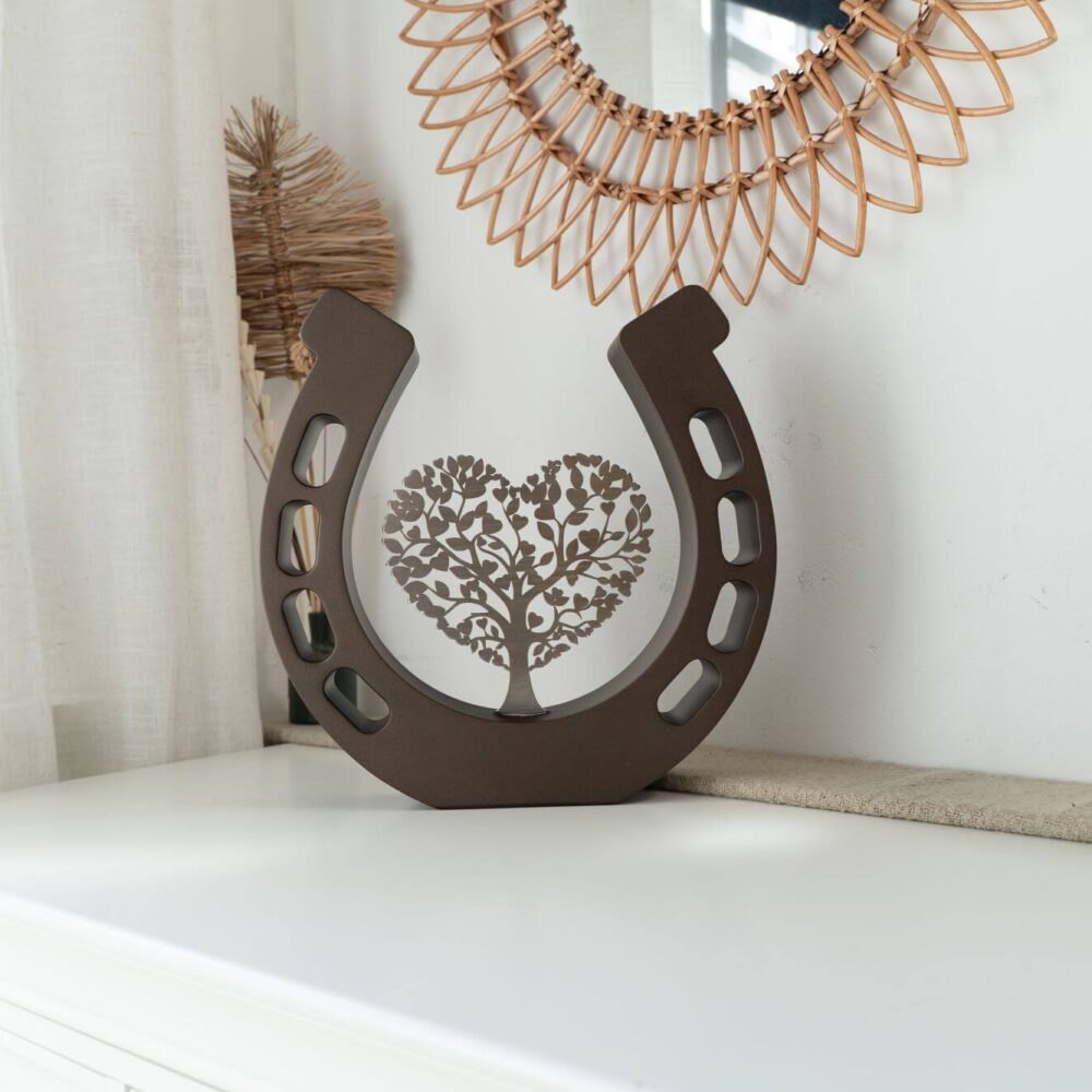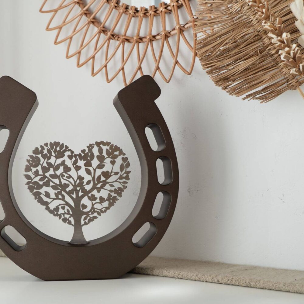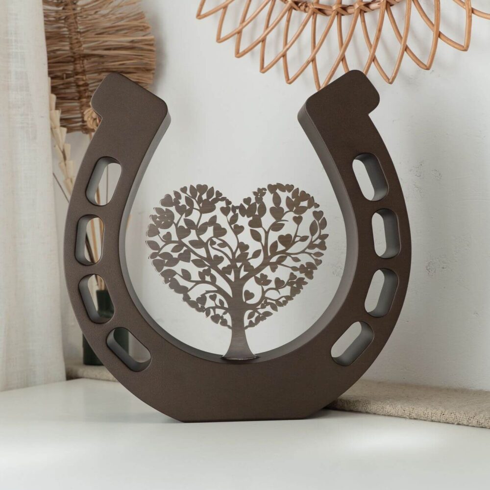 De Hoefijzer Memoria Arboris (Boom van Herinnering) RVS-gecoat Antraciet/Bronsachtig-bruin is een stijlvol en handgemaakt herinneringsmonument van hoogwaardig roestvrij staal (RVS). Dit exclusieve gedenkornament straalt luxe, duurzaamheid en vakmanschap uit en vormt een bijzondere plek om het as of resomeerpoeder van uw dierbare te bewaren. Het ontwerp is ideaal voor een prominente plaats binnenshuis, zoals op een eettafel, vensterbank, in een vitrine of op een persoonlijke gedenk- of herinneringsplek.